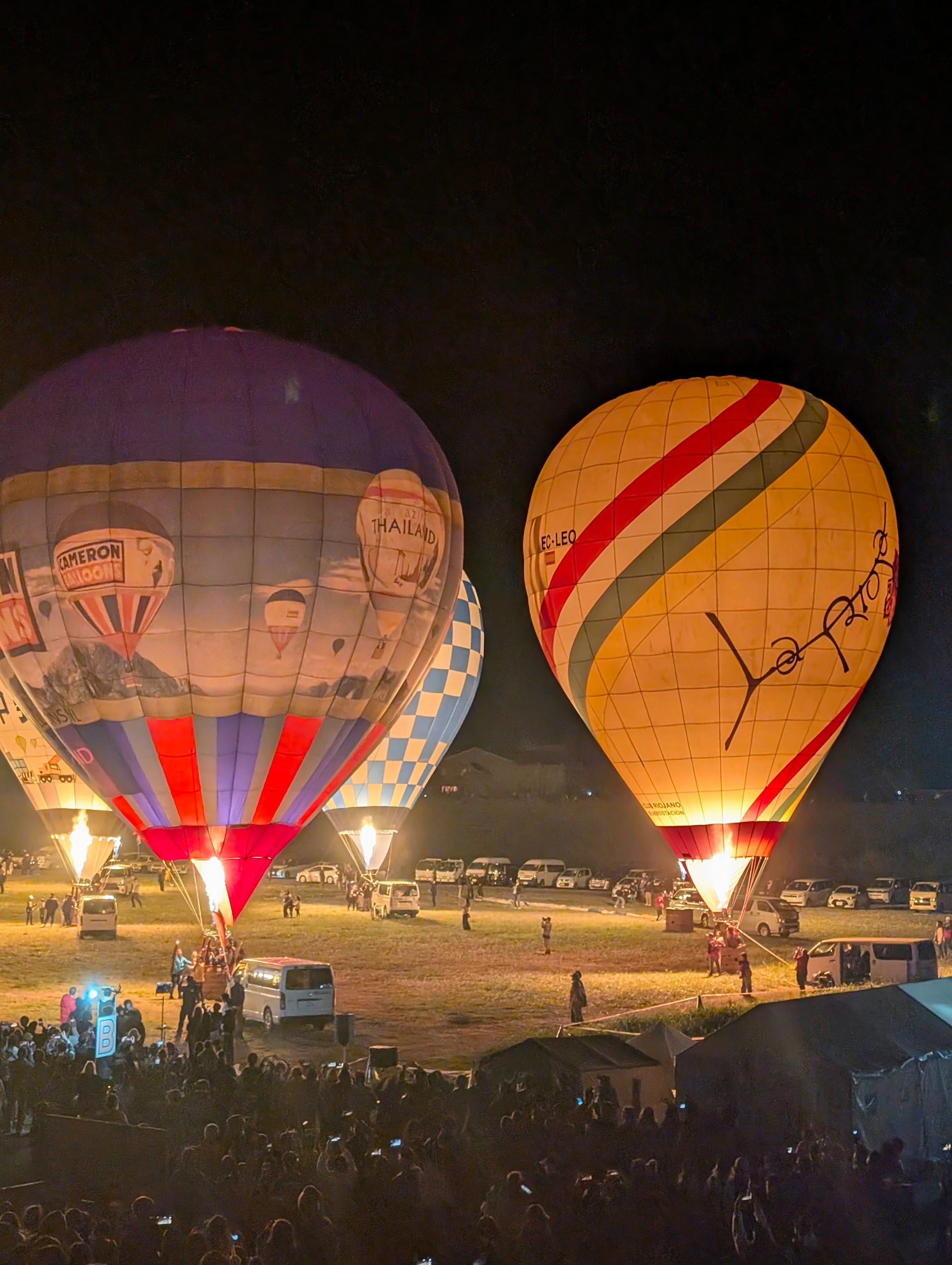 地上でバーナーによるバルーンのライトアップイベントがあるのです。
