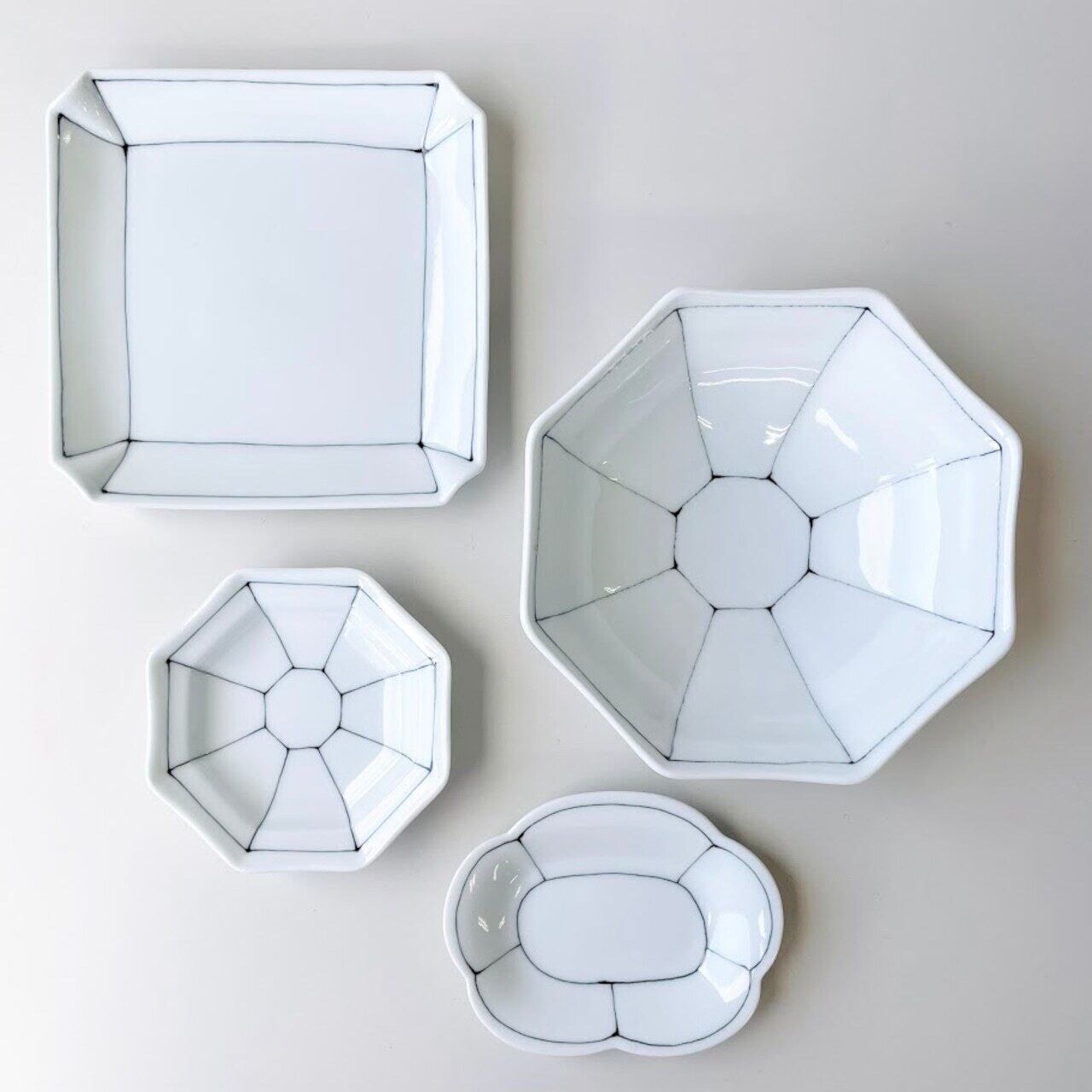 染付線割八角小皿(黒)