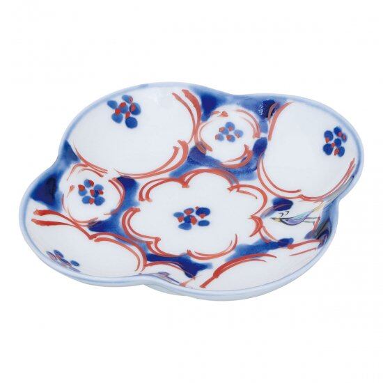 絵筆の動きが楽しい染錦の花紋様。ことりを忍ばせて大人の暮らしにしあわせなエッセンスを添えます。