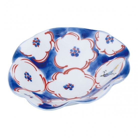 絵筆の動きが楽しい染錦の花紋様。ことりを忍ばせて大人の暮らしにしあわせなエッセンスを添えます。
